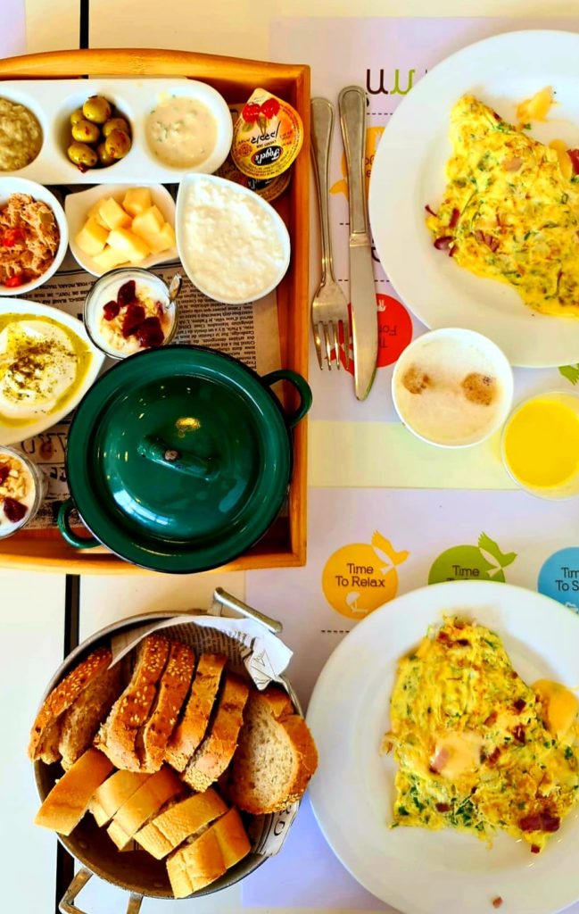 ארוחת בוקר – אכלנו במלון מטיילים מטולה – ארוחת בוקר ישראלית כמיטב המסורת, מוגשת במקום. הרבה שעות אחריה, לא תהיו רעבים.